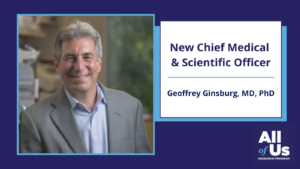 and a professor in School of Nursing, will leave Duke to assume the role of Chief Medical and Scientific Officer for the National Institutes of Health (NIH) All of Us Research Program, effective January 2022. In this role, Dr. Ginsburg will help direct the national scientific research agenda to improve health and accelerate research using precision medicine.